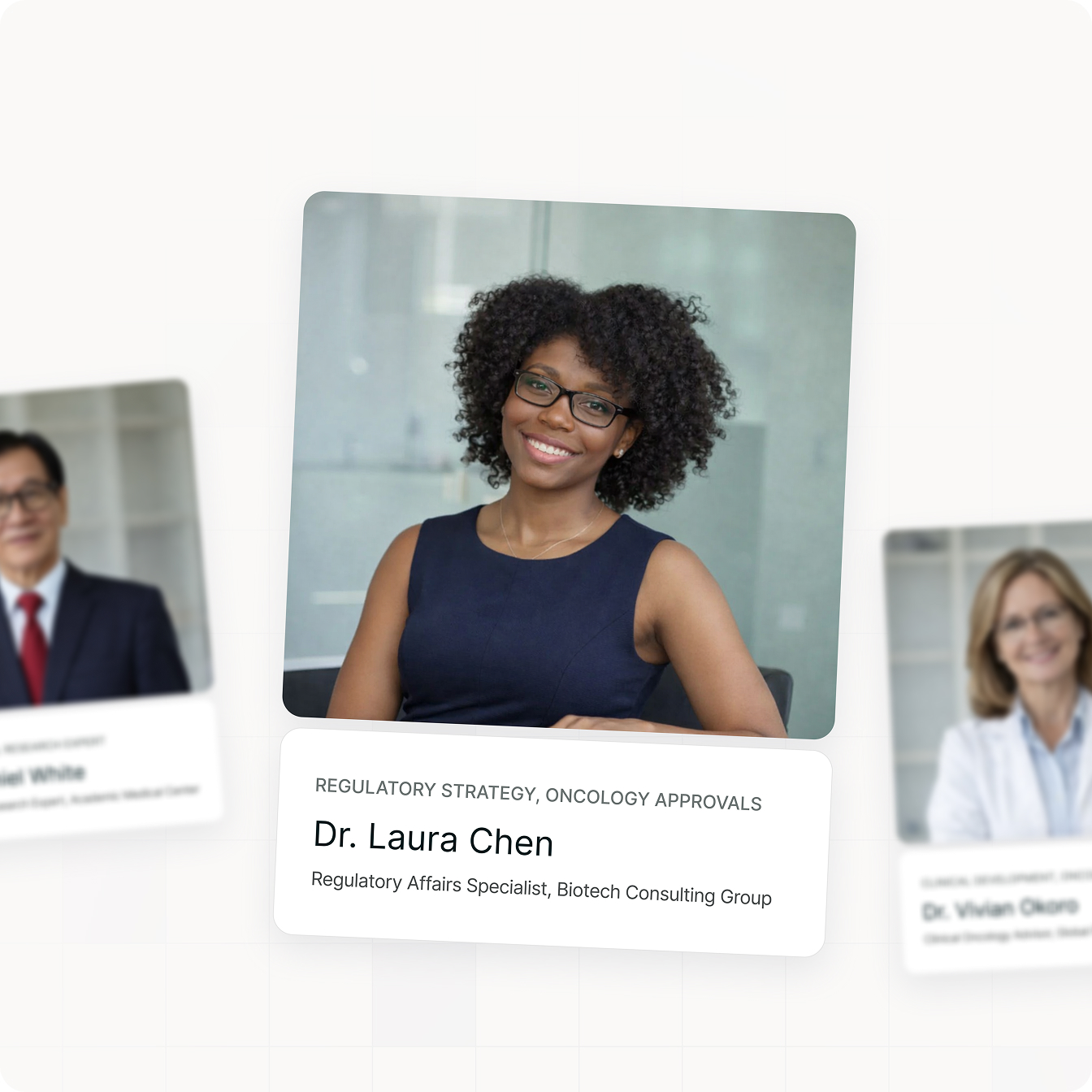 Browse vetted experts by domain, experience, and relevance to your decision.